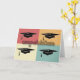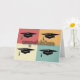 Send your graduate a word of congratulations with this modern graduation greeting card. Blank inside so you can add your own words of appreciation, wisdom and advice. Colourful modern design features four graduation caps with four squares as a background. Modern pin stripe lines add texture to the card.