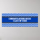 Customisable name graduation congratulations class of banner poster in fun and bold bright blue, black and white retro chevron zigzags stripes pattern.