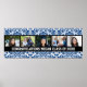 Customisable name and photo template graduation congratulations class of banner poster in fun and bold dark navy blue, black and white classic floral damask vintage pattern.