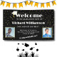 A modern and elegant graduation welcome / banner sign to congratulate your new grad and welcome your guests. Tells their story and features a touch of retro lettering and photos of the graduate. Much to personalise to make appropriate for your own event. Any design questions, just send a chat and we'll be delighted to assist.