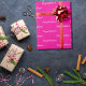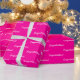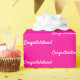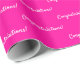 A grily, trendy party wrapping paper sheets. A hot pink background, white text: Congratulations!