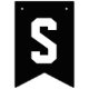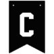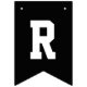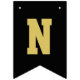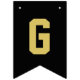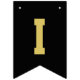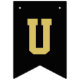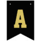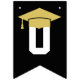 Modern and simple graduation party bunting banner features "Congratulations!" with grad cap accent Black bunting flags with alternating white and gold letters in sporty varsity letter style. Note, colours can be customised to match school colours or party colours.