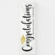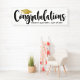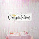 Stylish graduation party banner features "Congratulations" in trendy black calligraphy script with faux gold foil coloured grad cap and modern custom text for the graduate's name and class year. Clean white background colour.