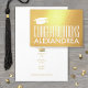 Congratulate the graduate in style with this elegant gold real foil graduation greeting card. All text is simple to customise. Design features modern minimalist typography, personalised name, and greeting inside that reads "DREAM big SPARKLE more SHINE bright CONGRATULATIONS." Please note that mortar board and text inside is printed with gold colour, not metallic foil. This card is a stylish and chic way to celebrate the graduate's success and accomplishment. For a unique finishing touch, sign interior with a gold pen.