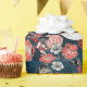 This elegant Congratulations Navy Blue Floral Pattern Wrapping Paper features a modern hand-drawn floral pattern of contrasting red and black flowers against a modern navy blue background, showcasing illustrations of hydrangea, hibiscus, jasmine and bignonia tropical flowers. Personalize with a heading at the top, names and date.