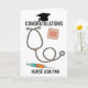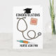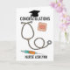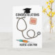 A personalised nurse graduate card featuring a graduate cap, stethoscope, band-aid and a needle. You will be able to easily personalise the front of this nurse graduate card with the nurse's name. The inside reads a congratulations graduate message hat can be personalised by you and the back features a grad cap along with the class year, which you can also personalise. This nurse grad card is a great keepsake for the nurse grad.