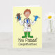 This is an amusing card for a male who has passed their Veterinary exams and is now a qualified vet. It is a cartoon caricature of a smiling male vet dressed in his white coat, wearing blue gloves and green Wellington boots. He is holding a large brown rat who is looking very worried in one hand and an enormous thermometer in the other. He has a small brown mouse peeping out of his pocket. He has a stethoscope hanging around his neck. The background is pale yellow. The image is my own from a freehand sketch, lined in manually and scanned and digitally colored in Sketchbook Pro. I was inspired to do the card after seeing a programme about a newly qualified vet.