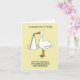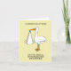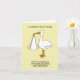 A cartoon of a large stork holding a baby in a white sheet, set against a pale lemon colored background. The words 'Congratulations on the arrival of your second Grandchild' accompany the image.