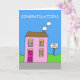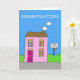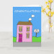A cartoon house with lights on inside and a smoking chimney, with the word 'Congratulations' above the image.