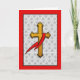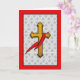 Congratulations on Ordination to the Diaconate. Deacon symbol on the cover of the card is a gold cross with a red stole / sash across the left hand shoulder of the cross. A triangular fleur-de-lis shape is repeated to make a pattern in the background. Framed in red with a thin line of black as an accent. Congratulate someone as they continue their spiritual journey as a deacon. Part of cross courtesy of:Pixabay. Art, image, and verse copyright © Shoaff Ballanger Studios.