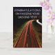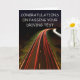 Congratulations on passing your driving test card. Card shows a stream of traffic trails at night.