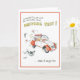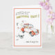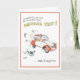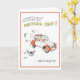Humourous greeting card for girl passing driving test. Cartoon illustration of girl in car with l plates flying off.