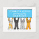 Four cartoon kittens holding up a turquoise sign that says 'Congratulations on passing your exams'.