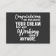 Congratulations on pursuing your dream of not work business card