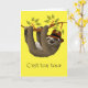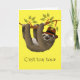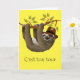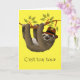 Congratulations on retirement, greeting card written in French. C'est tonne tour "It's your turn" Message inside translates as Congratulations! Long live retirement! Cute sloth with brown coloured hat hangs from a leafy branch. Illustration with clip art elements from Openclipart. Image and verse copyright © Shoaff Ballanger Studios.