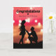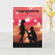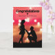 Elegant congratulations on your enegagement greeting card, featuring a romantic sunset, a boyfriend proposing to his girlfriend, and a modern congratulations template.