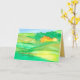 A greeting card for new owners of a home in the country featuring a peaceful country setting with a house tucked in rolling green hills and shade trees warmed by the morning sun painted with watercolor. You can edit the inside colour and text to fit your needs.