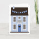 Home Sweet Home Congratulations Card | A modern congrats on your new home card with a simple vector drawing of a blue house, bunting with the words "NEW HOME" and the couples name on a plaque above the door.