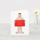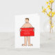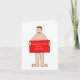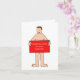 A cartoon of a man wearing no clothes but holding a red sign that has 'Congratulations on your vasectomy' written on it.