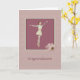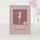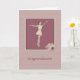 This ballet-themed congratulations card shows a ballerina in the on pointe position on a raspberry background. Two daisies are clustered in the bottom corner. The customer can make changes to the inside verse to suit their needs.