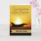 Congratulations on Your Promotion to lieutenant colonel in the Air Force. Paper greeting card with a photograph of an Air Force military jet set against a blazing sun in the sky. Add a name to the gold toned ribbon on the cover of the card. Art, image, and verse copyright © Shoaff Ballanger Studios, 2022.