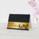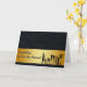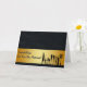 It is a shine golden striped badge card for congratulation to new business restaurant card. Kitchen tools are added symbol to it.