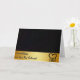 It is a shine golden striped badge card for congratulation to new business restaurant card. Kitchen tools are added symbol to it.