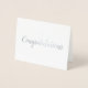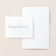 Celebrate with this beautiful card! The word "Congratulations" appears in silver foil over a grey background, in a handwritten-style brush (brushstroke) script font. The inside of the card is blank, ready for your personal message. Perfect for a wedding, engagement, anniversary, new baby, graduation, new job, promotion, retirement, or any other happy event or accomplishment.