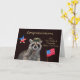 Congratulate your son on completing basic training with an adorable racoon smiling, wearing a military hat next to an American flag and a cute star. Background is a pretty burgundy. Let them know how proud we are of them and how much they are appreciated.