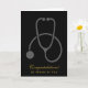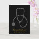 A congratulations graduate greeting card. Designed with a simple grey stethoscope placed on a black background. Elegant minimalist design. Personalised message inside the card.