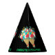 Celebrate achievements with this elegant party hat featuring "Congratulations" text and a beautiful flower image, complemented by a customisable "Add Text" option on a striking black background. Perfect for graduations, promotions, or any special celebration, this hat adds a sophisticated touch to your festivities.