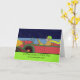 Congratulations to a wonderful mom on her new car. Greeting card with vintage look of a classic red car with green trim. Lady dressed in camel hair's coat, yellow green hat, glove, and long yellow scarf. Night driving scene with star filled sky. Retro auto card. Art, image, and verse copyright © Shoaff Ballanger Studios.