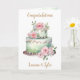 A congratulations card for newlyweds. You can add the bride and groom's names on the front in the personalise area. A beautiful white, pink and sage green wedding cake with a sentimental poem inside.