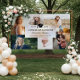 Stylish and beautiful personalised graduation banner to display and celebrate your amazing graduate. This graduation banner features a 6 photo grid collage to display your own special graduate photos and memories. Grad cap design with the class of and graduation. Also, customise with the graduate name, and school displayed over an elegant pearl gradient.