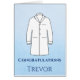 Congratulate a future doctor or other medical professional as they are awarded their White Coat. Elegant Doctor Physician White Coat Ceremony Monogrammed to celebrate and honour a physician or doctor in training. Elegant way to say congrats and honour someone at a rite of passage where the Hippocratic Oath is recited as they enter the medical profession. Features a doctors coat, name, date and field of medical work. Faux antique silver background. Monogrammed with name and add a personal message on the inside of this card. Blue gradient background.