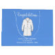 Congratulations to the future MD, Doctor, Physician who has earned their white coat. Stylish and modern design monogrammed with name, event, and date of event. Script style congratulations. Blue, white and black style. Sketched medical white coat.