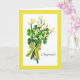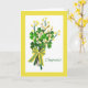 Congratulations card features a spring bouquet of lucky shamrocks and yellow blooming branches along with pussy willows. The bouquet is bound together with a faux (not real) ribbon-bow. Can customise and use for an engagement, wedding, wedding vows, or other spring event. Art, image, and verse copyright © Shoaff Ballanger Studios, 2021.