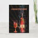 Splashing wine and bubbles from a bottle and glass give this congratulations card a sense of excitement. The words "You are single again" are printed on the label of the wine bottle. A great way to say congratulations.