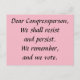 Dear Congressperson, We resist and persist. We remember, and we vote.
