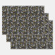 Elegant black and gold wrapping paper sheets featuring conifer tree branches and cones.