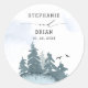 Coniferous Trees Blue Wedding Round Sticker.