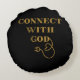 This round pillow has a design that features a Meteoritika print font with tan letters displaying the phrase “Connect With God” with a plus cable with heart and plug icon coming from the word God in this bible based theme. This pillow is made with high quality fabric our pillows are soft and wrinkle-free the cover is machine washable.