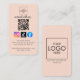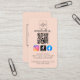 Elevate your networking game with our "Connect With Us" Modern Social Media QR Code Business Card. This unique design seamlessly integrates QR codes for easy connections to your social media platforms, including Instagram, Facebook, and TikTok. The sleek vertical layout, coupled with a stylish black backdrop, creates a sophisticated and professional look. Customise the card with your business logos, and take advantage of the online QR code generator for a seamless branding experience. In a modern blush pink hue, this business card not only stands out but also reflects a contemporary and trendy aesthetic. Make a lasting impression and effortlessly expand your social media presence with this cool and promotional business card.