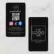 Designed with a contemporary aesthetic, this business card is more than just visually appealing; it's a promotional powerhouse. The inclusion of your business logos and the vertical orientation adds a touch of sophistication, while the black and white colour scheme exudes a modern and timeless vibe. With the ease of online customisation and a QR code generator, this business card allows you to effortlessly create a professional and memorable representation of your brand. Make a statement in the business world and let your connections flourish with this Connect With Us Modern Social Media QR Code Cool Business Card.