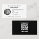 This design features a connect with us with QR code business card template with the add your own logo photo, for the professional business corporate template, with social media Facebook Instagram icons, and a simple minimalist contemporary style, with online website web address URL, a modern simple typography design, a trendy stylish basic clean, great for small business owner shop store, a basic black and white template
