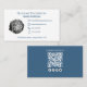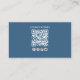 This design features a connect with us with QR code business card template with the add your own logo photo, for professional business corporate template, with social media Facebook Instagram icons, and a simple minimalist contemporary style, with online website web address URL, a modern simple typography design, a trendy stylish basic clean, great for small business owner shop store, a basic blue and white template