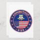 Badge of Connecticut with flag of Connecticut and flag of USA colours, rounded shape.