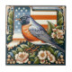 Connecticut American Robin and State Flower Blue Ceramic Tile