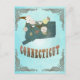 Aqua Connecticut map with lovely birds on tree branches
