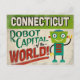 A funny Connecticut vintage travel postcard featuring a friendly robot with fun retro style text that says, "Connecticut, Robot Capital of the world!"